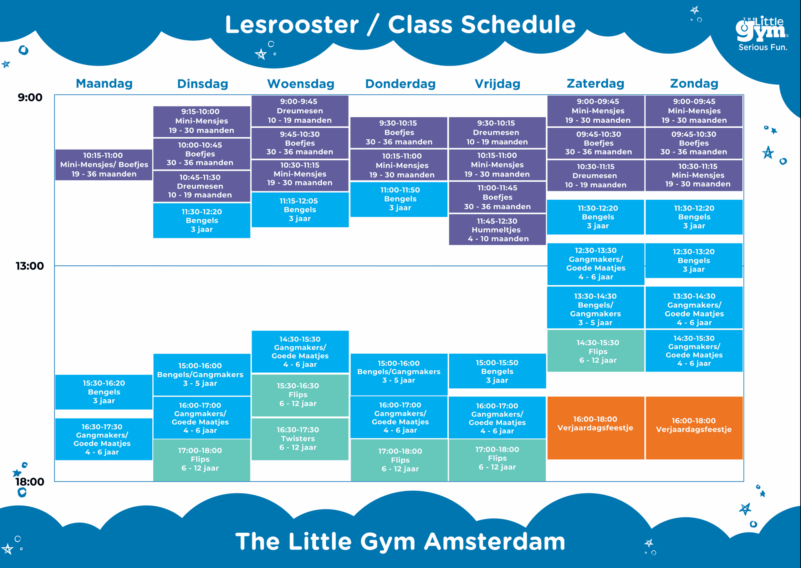 The Little Gym biedt leeftijdsgerichte, wekelijkse lessen vol actie en met een vaste planning, waardoor je kind zich optimaal ontwikkelt en het een leuk onderdeel van hun routine wordt!